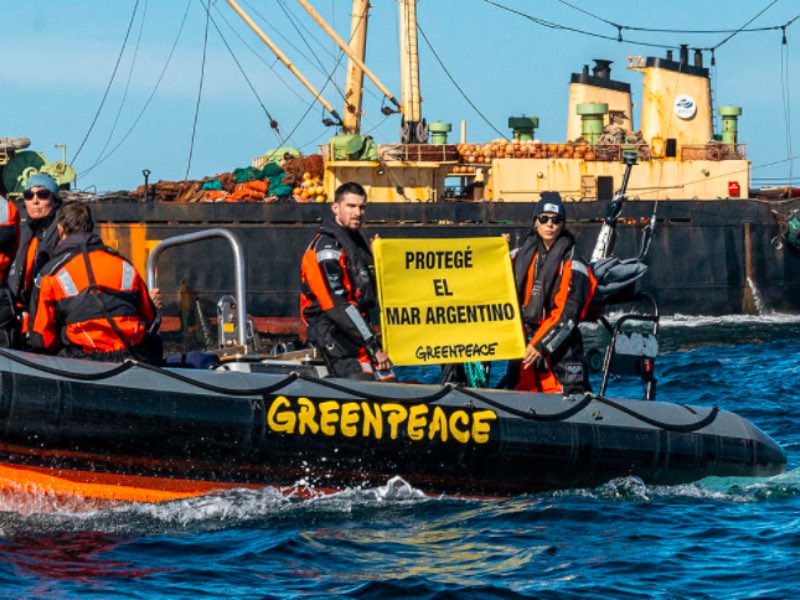 Activistas de Greenpeace en el Mar Argentino denunciando la pesca ilegal en 2022. (Foto: Greenpeace).
